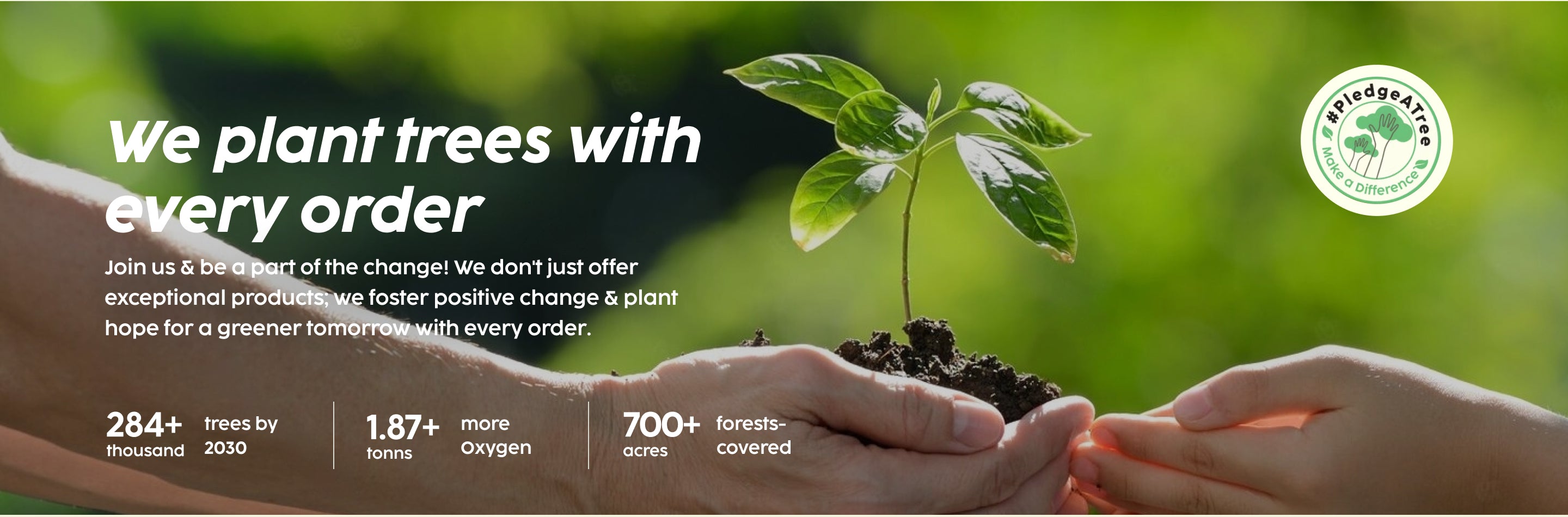 Shop NowThe "Pledge a Tree" initiative is our commitment to plant trees in India for every order placed on our website. We carefully select areas that need reforestation and work with local organizations to ensure the trees are planted and cared for properly.